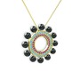 Siyah inci, ametist ve akuamarin 925 ayar altın kaplama gümüş kolye (40 cm altın rolo zincir)
