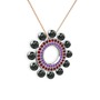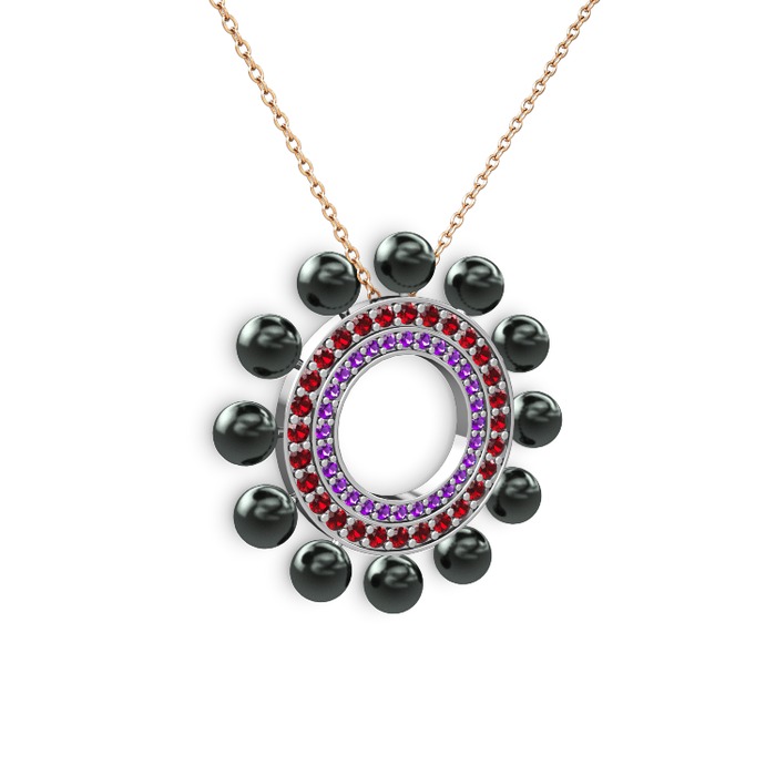 Siyah inci, ametist ve garnet 925 ayar gümüş kolye (40 cm rose altın rolo zincir)