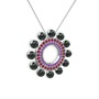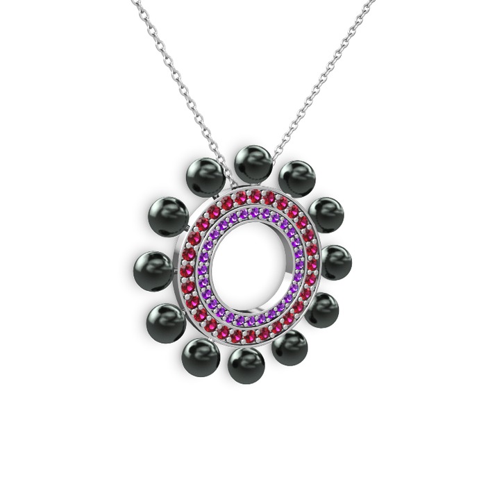Siyah inci, ametist ve rodolit garnet 8 ayar beyaz altın kolye (40 cm beyaz altın rolo zincir)