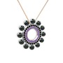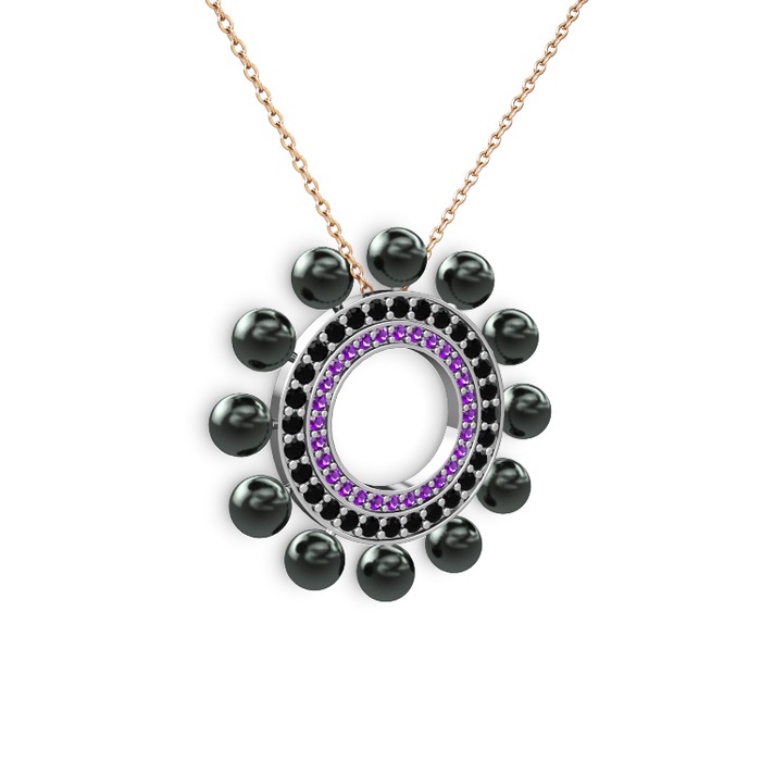 Siyah inci, ametist ve siyah zirkon 18 ayar beyaz altın kolye (40 cm rose altın rolo zincir)
