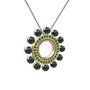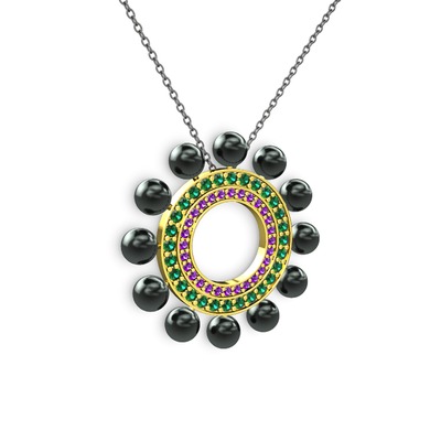Siyah inci, ametist ve yeşil kuvars 8 ayar altın kolye (40 cm gümüş rolo zincir)