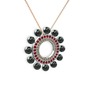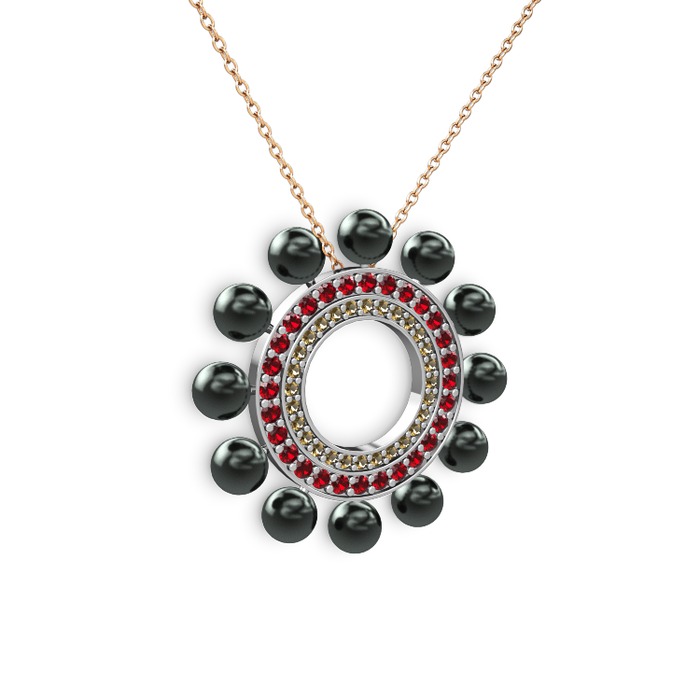 Siyah inci, dumanlı kuvars ve garnet 8 ayar beyaz altın kolye (40 cm rose altın rolo zincir)