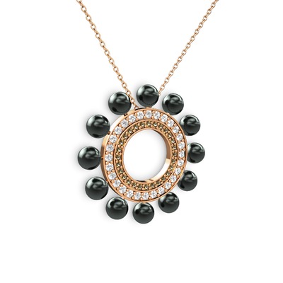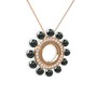 Siyah inci, dumanlı kuvars ve pırlanta 14 ayar rose altın kolye (0.2464 karat, 40 cm rose altın rolo zincir)
