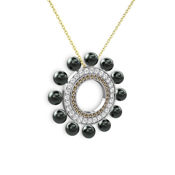 Siyah inci, dumanlı kuvars ve swarovski 14 ayar beyaz altın kolye (40 cm gümüş rolo zincir)