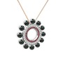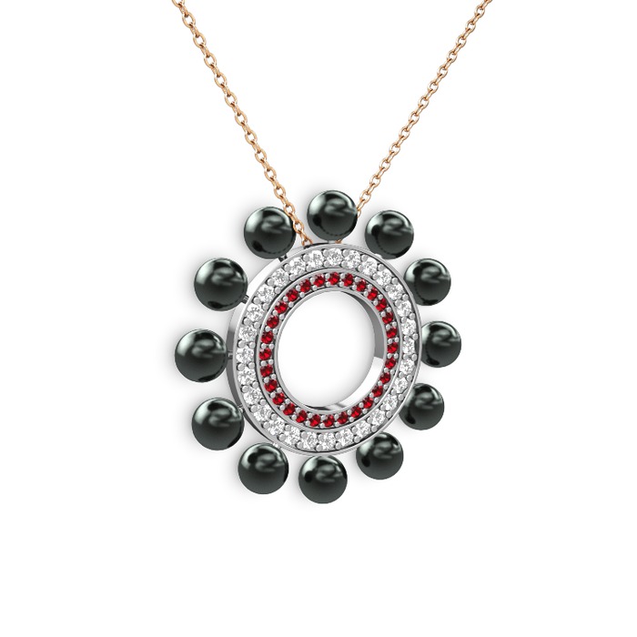Siyah inci, garnet ve pırlanta 18 ayar beyaz altın kolye (0.2464 karat, 40 cm rose altın rolo zincir)
