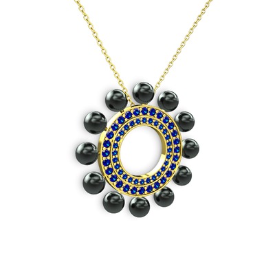 Siyah inci ve lab safir 18 ayar altın kolye (40 cm altın rolo zincir)
