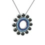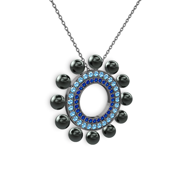 Siyah inci, lab safir ve akuamarin 925 ayar siyah rodyum kaplama gümüş kolye (40 cm gümüş rolo zincir)
