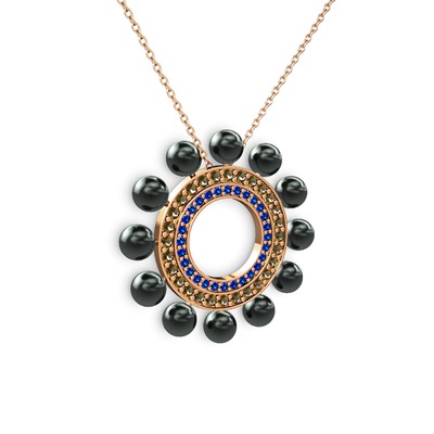 Siyah inci, lab safir ve dumanlı kuvars 925 ayar rose altın kaplama gümüş kolye (40 cm rose altın rolo zincir)