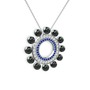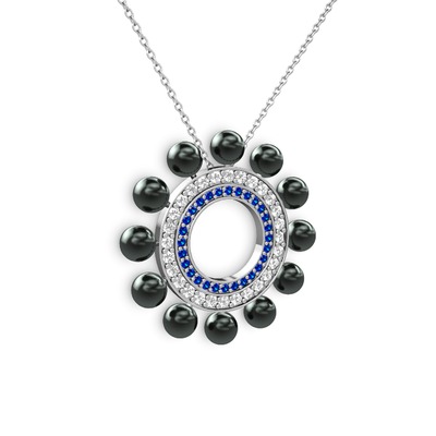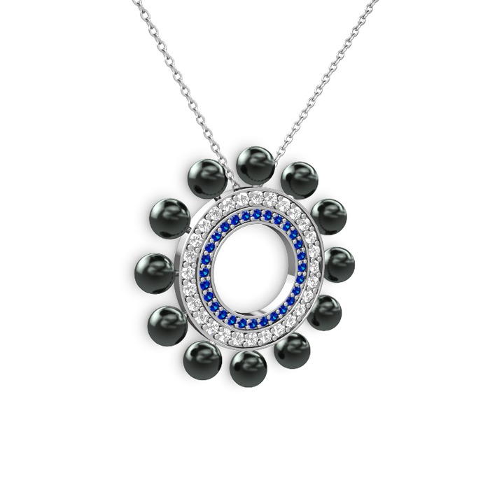 Siyah inci, lab safir ve pırlanta 18 ayar beyaz altın kolye (0.2464 karat, 40 cm gümüş rolo zincir)