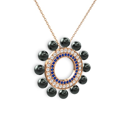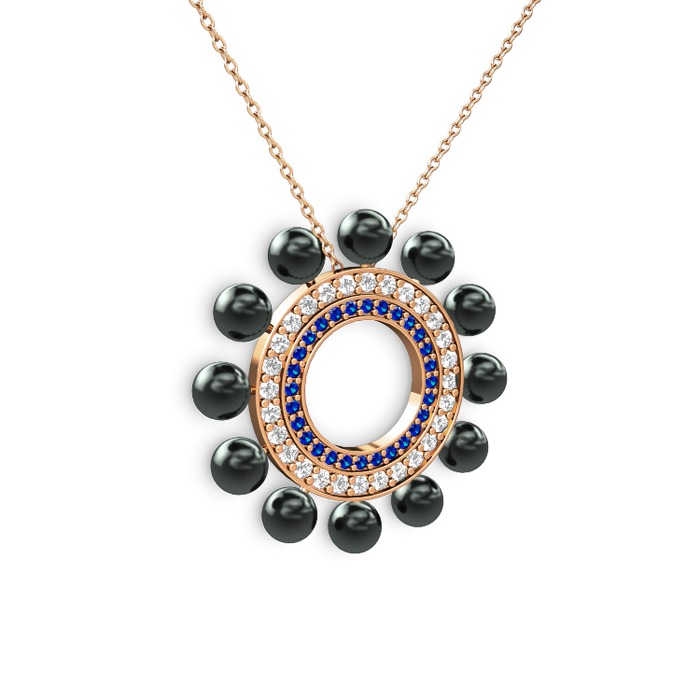 Siyah inci, lab safir ve swarovski 14 ayar rose altın kolye (40 cm rose altın rolo zincir)