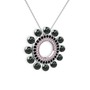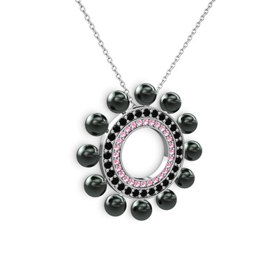 Siyah inci, pembe kuvars ve siyah zirkon 925 ayar gümüş kolye (40 cm beyaz altın rolo zincir)
