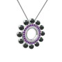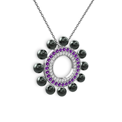 Siyah inci, pırlanta ve ametist 8 ayar beyaz altın kolye (0.42 karat, 40 cm gümüş rolo zincir)