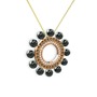 Siyah inci, pırlanta ve dumanlı kuvars 18 ayar rose altın kolye (0.42 karat, 40 cm altın rolo zincir)