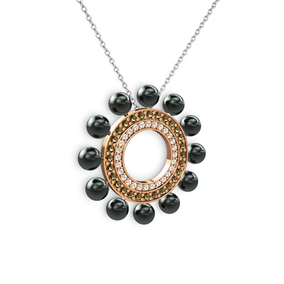Siyah inci, pırlanta ve dumanlı kuvars 925 ayar rose altın kaplama gümüş kolye (0.42 karat, 40 cm gümüş rolo zincir)