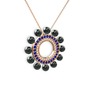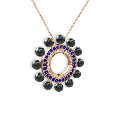 Siyah inci, pırlanta ve lab safir 8 ayar rose altın kolye (0.42 karat, 40 cm rose altın rolo zincir)