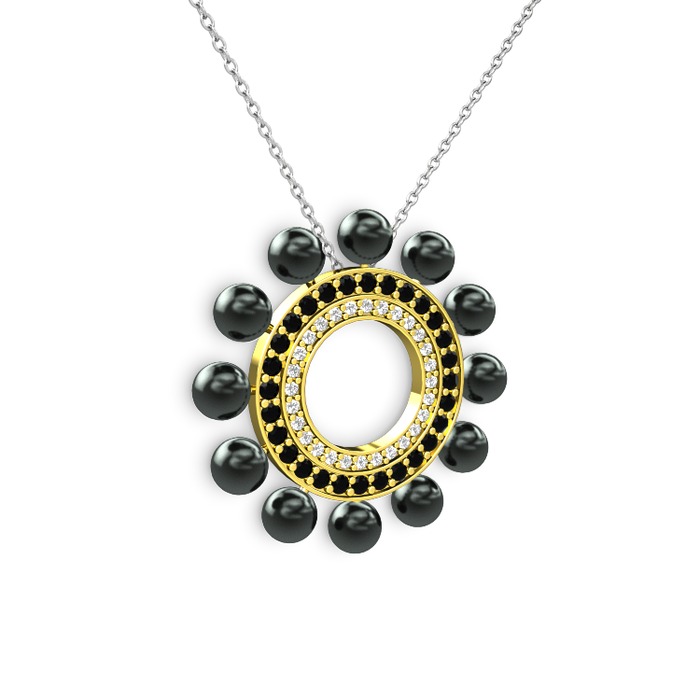 Siyah inci, pırlanta ve siyah zirkon 14 ayar altın kolye (0.42 karat, 40 cm beyaz altın rolo zincir)