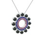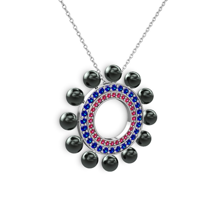 Siyah inci, rodolit garnet ve lab safir 14 ayar beyaz altın kolye (40 cm beyaz altın rolo zincir)