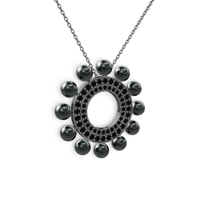 Siyah inci ve siyah zirkon 925 ayar siyah rodyum kaplama gümüş kolye (40 cm gümüş rolo zincir)