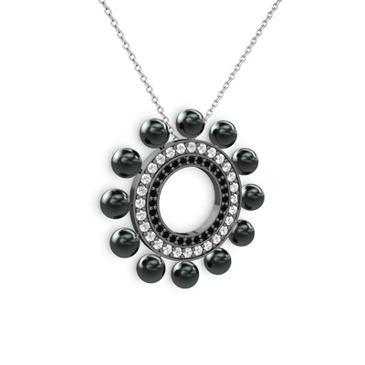 Siyah inci, siyah zirkon ve swarovski 925 ayar siyah rodyum kaplama gümüş kolye (40 cm beyaz altın rolo zincir)