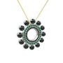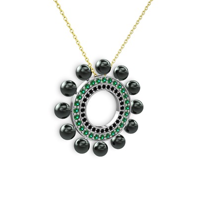 Siyah inci, siyah zirkon ve yeşil kuvars 14 ayar beyaz altın kolye (40 cm altın rolo zincir)