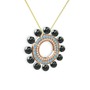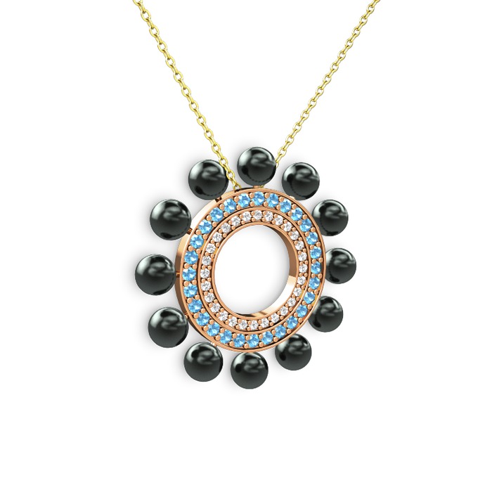 Siyah inci, swarovski ve akuamarin 8 ayar rose altın kolye (40 cm gümüş rolo zincir)