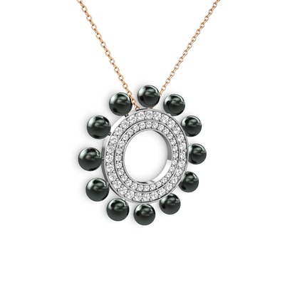 Siyah inci, swarovski ve pırlanta 8 ayar beyaz altın kolye (0.2464 karat, 40 cm rose altın rolo zincir)