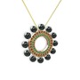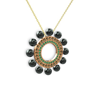 Siyah inci, yeşil kuvars ve dumanlı kuvars 18 ayar rose altın kolye (40 cm altın rolo zincir)