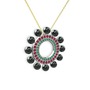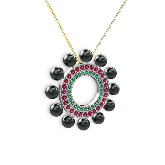 Siyah inci, yeşil kuvars ve rodolit garnet 18 ayar beyaz altın kolye (40 cm gümüş rolo zincir)