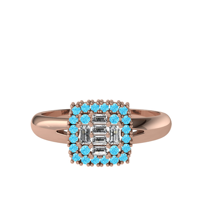 Beyaz zirkon ve akuamarin 925 ayar rose altın kaplama gümüş yüzük