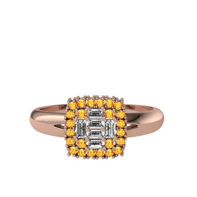 Beyaz zirkon ve sitrin 925 ayar rose altın kaplama gümüş yüzük