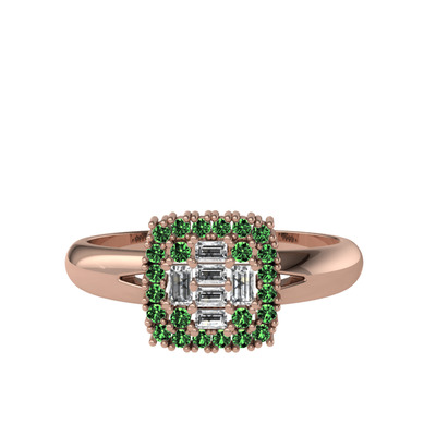 Beyaz zirkon ve yeşil kuvars 925 ayar rose altın kaplama gümüş yüzük