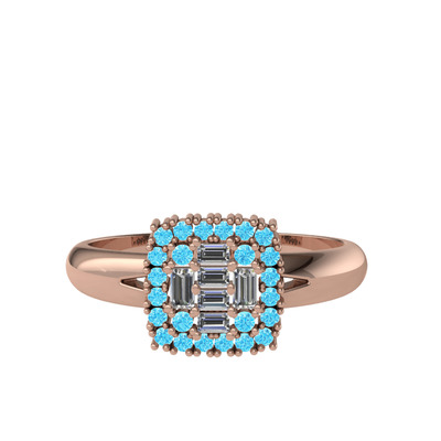 Pırlanta ve akuamarin 18 ayar rose altın yüzük (0.24 karat)