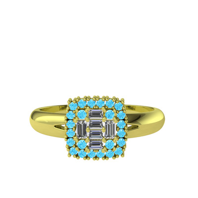 Pırlanta ve akuamarin 925 ayar altın kaplama gümüş yüzük (0.24 karat)