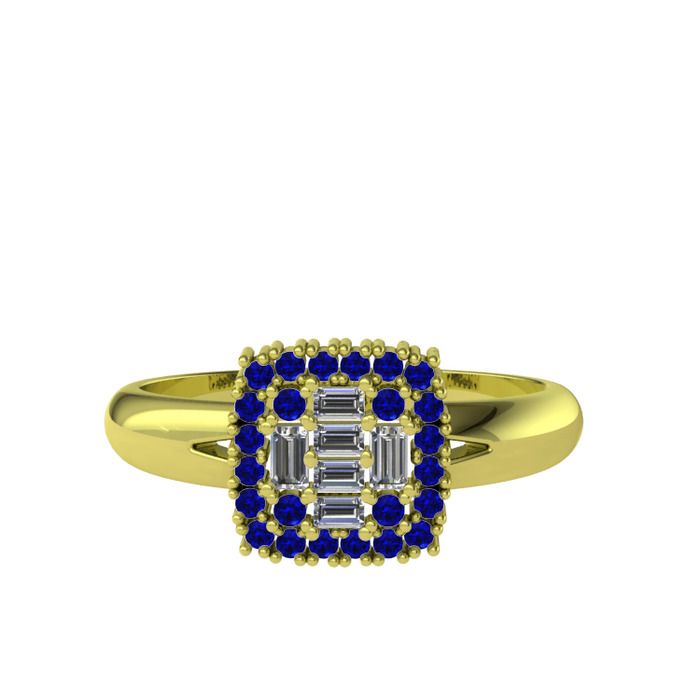 Pırlanta ve lab safir 18 ayar altın yüzük (0.24 karat)