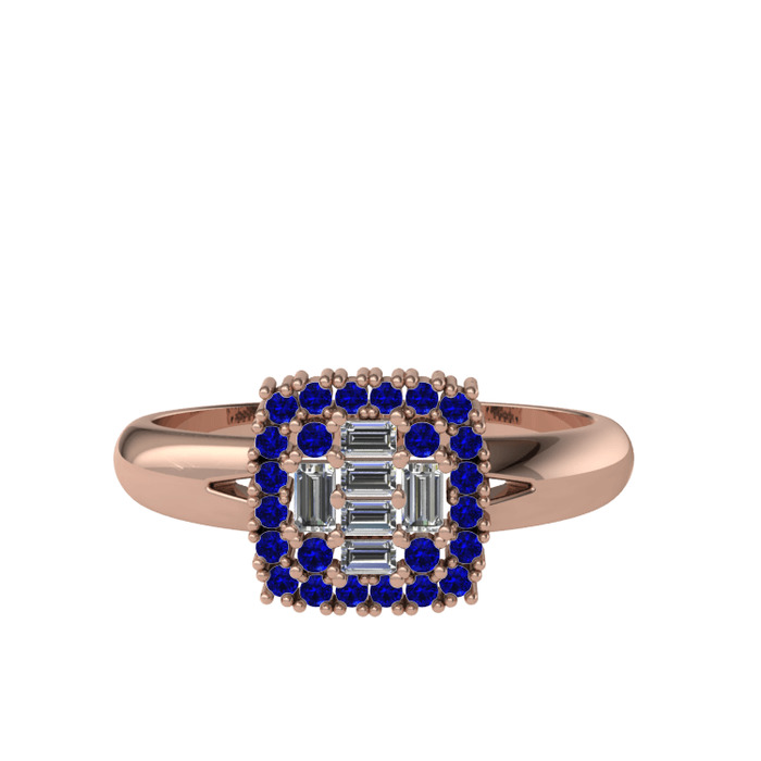 Pırlanta ve lab safir 18 ayar rose altın yüzük (0.24 karat)