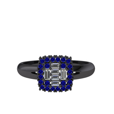 Pırlanta ve lab safir 925 ayar siyah rodyum kaplama gümüş yüzük (0.24 karat)
