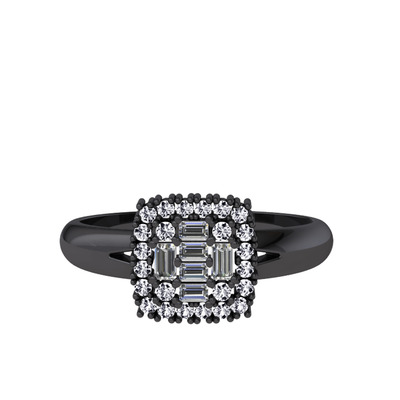 Pırlanta ve swarovski 925 ayar siyah rodyum kaplama gümüş yüzük (0.24 karat)