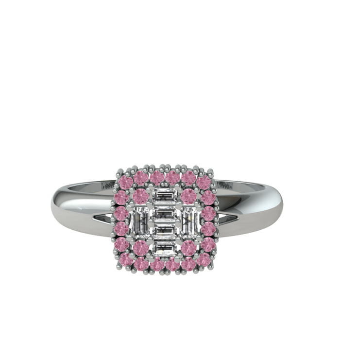 Swarovski ve pembe kuvars 14 ayar beyaz altın yüzük
