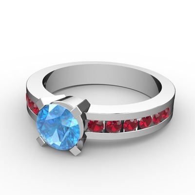 Akuamarin ve garnet 14 ayar beyaz altın yüzük