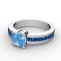 Akuamarin ve lab safir 14 ayar beyaz altın yüzük