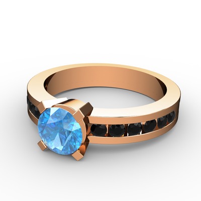 Akuamarin ve siyah zirkon 18 ayar rose altın yüzük