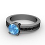 Akuamarin ve siyah zirkon 925 ayar siyah rodyum kaplama gümüş yüzük