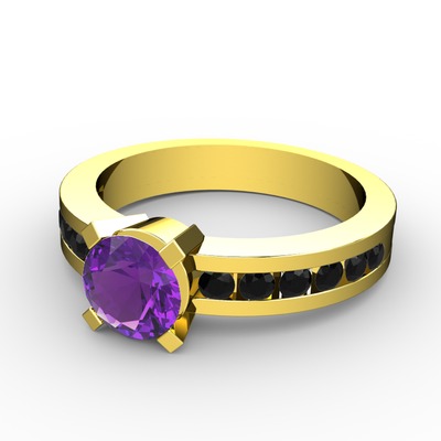 Ametist ve siyah zirkon 14 ayar altın yüzük
