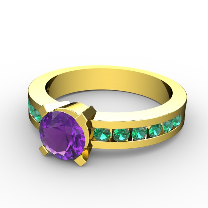 Ametist ve yeşil kuvars 18 ayar altın yüzük