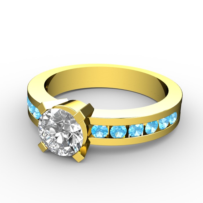 Beyaz zirkon ve akuamarin 14 ayar altın yüzük