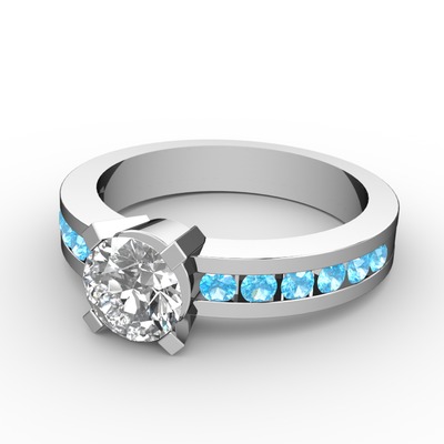 Beyaz zirkon ve akuamarin 925 ayar gümüş yüzük