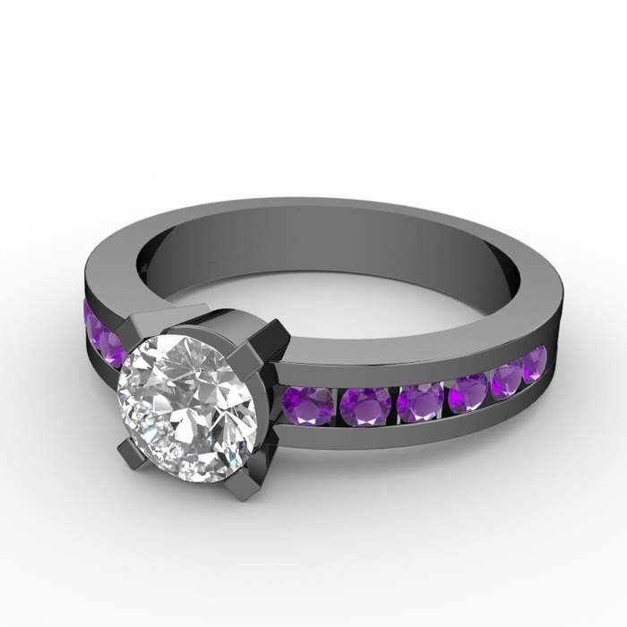 Beyaz zirkon ve ametist 925 ayar siyah rodyum kaplama gümüş yüzük