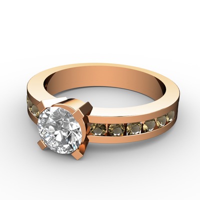 Beyaz zirkon ve dumanlı kuvars 925 ayar rose altın kaplama gümüş yüzük
