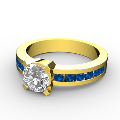 Beyaz zirkon ve lab safir 18 ayar altın yüzük
