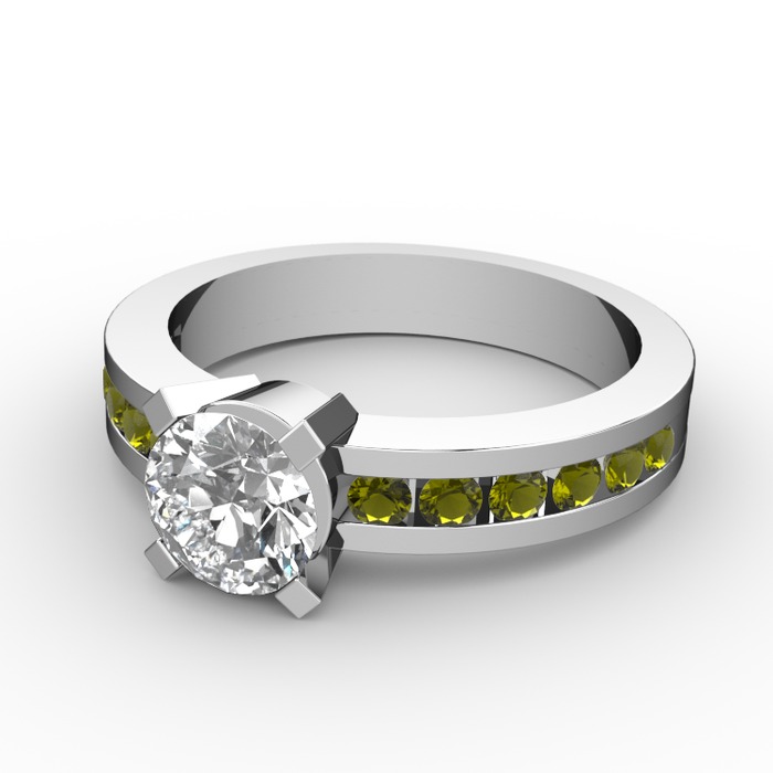 Beyaz zirkon ve peridot 18 ayar beyaz altın yüzük